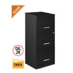 Archivero metálico con 3 gavetas tamaño carta, correderas sencillas, cerradura en 3 cajones, pintura horneada en exterior e interiores galvanizados.