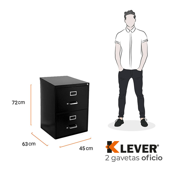 Fabricado de metal, con 2 gavetas de archivado, cuenta con cerrojo de bloqueo y llaves.