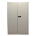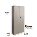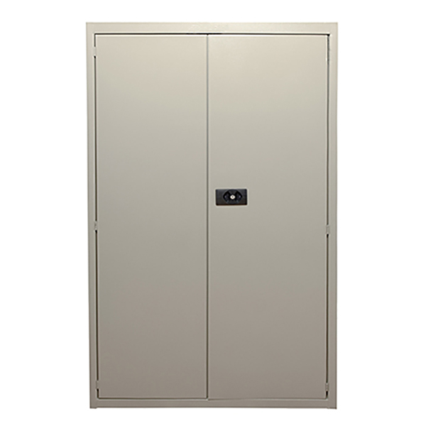 El cuerpo y las puertas son ensamblados mediante soldadura por resistencia. Cuenta con entrepaños fijos reforzados para mayor resistencia en cada división. Dos puertas abatibles, las puertas de los gabinetes se abren y cierran por medio de tres bisagras, cada puerta cuenta con 2 refuerzos verticales. Una puerta lleva su cerradura empotrada fabricada en plásticos ABS tipo paleta, incluye dos llaves y su estiradera.