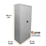 El cuerpo y las puertas son ensamblados mediante soldadura por resistencia. Cuenta con entrepaños fijos reforzados para mayor resistencia en cada división. Dos puertas abatibles, las puertas de los gabinetes se abren y cierran por medio de tres bisagras, cada puerta cuenta con 2 refuerzos verticales. Una puerta lleva su cerradura empotrada fabricada en plásticos ABS tipo paleta, incluye dos llaves y su estiradora.