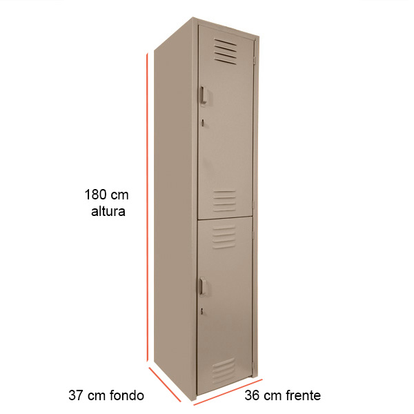 El cuerpo y las puertas son ensambladas mediante soldadura por resistencia. Las puertas se abren y cierran por medio de 2 bisagras tipo libro. Cada puerta cuenta con 2 rejillas de ventilación, estiradera y portacandado.